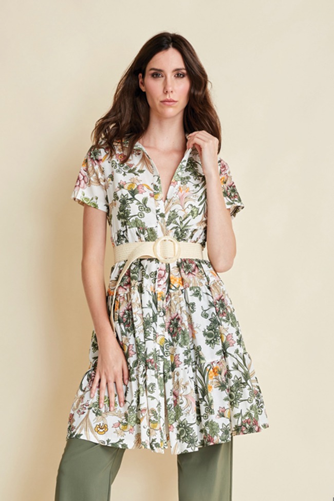 SHORT DRESS WITH FLORAL PRINT COTTON FLARES
