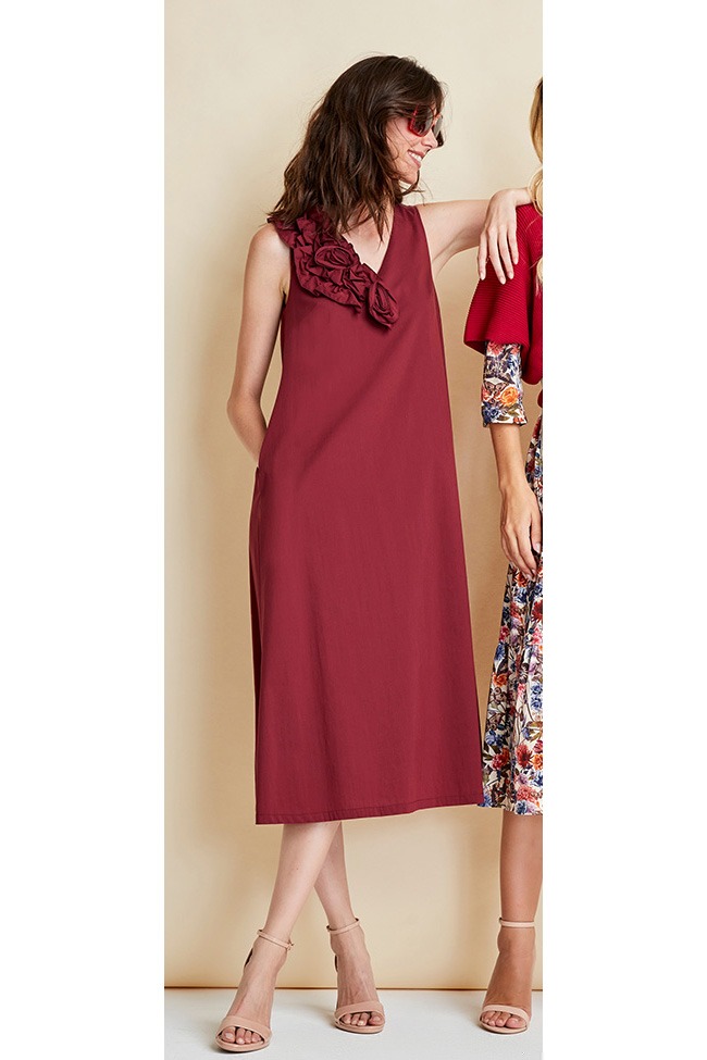 SLEEVELESS DRESS WITH ROUCHES IN CANVAS
